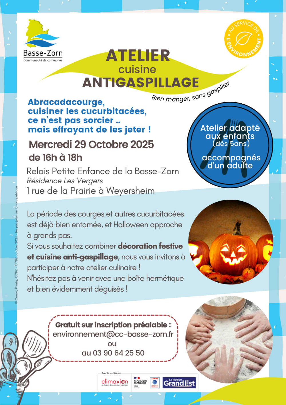 Rendez-vous le mercredi 29 octobre de 16h à 18h au RPE de la Basse-Zorn pour un atelier anti-gaspi déguisé : cuisiner les cucurbitacées !