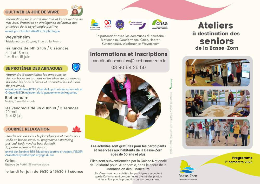 Les activités sont gratuites pour les participants et réservées aux résidents du territoire de la Basse-Zorn. Elles sont subventionnées par la Commission des Financeurs.