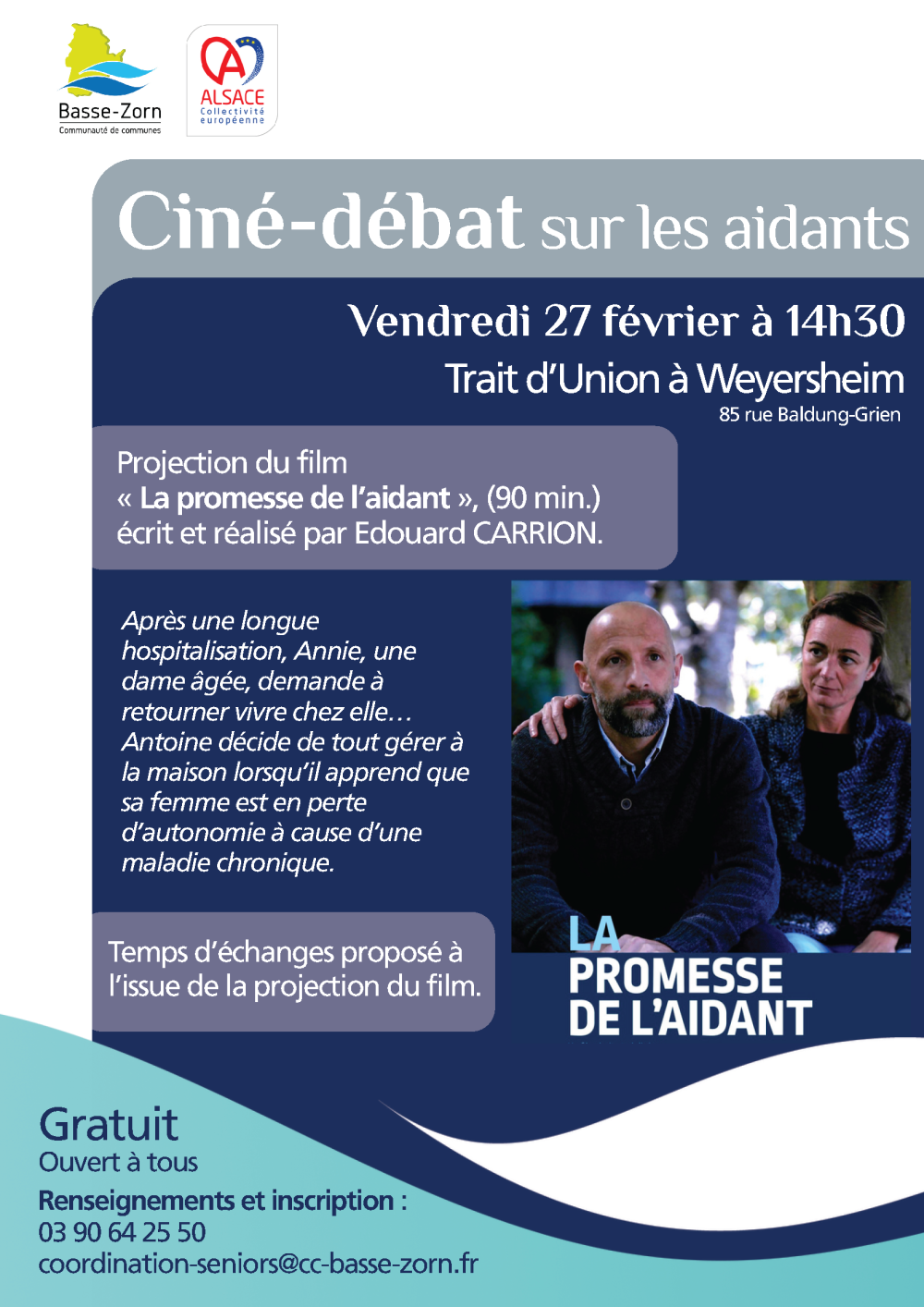 Rendez-vous le 27 février à 14h30 pour un ciné-débat autour du film "La promesse de l'aidant", à la médiathèque le Trait d'Union à Weyersheim.