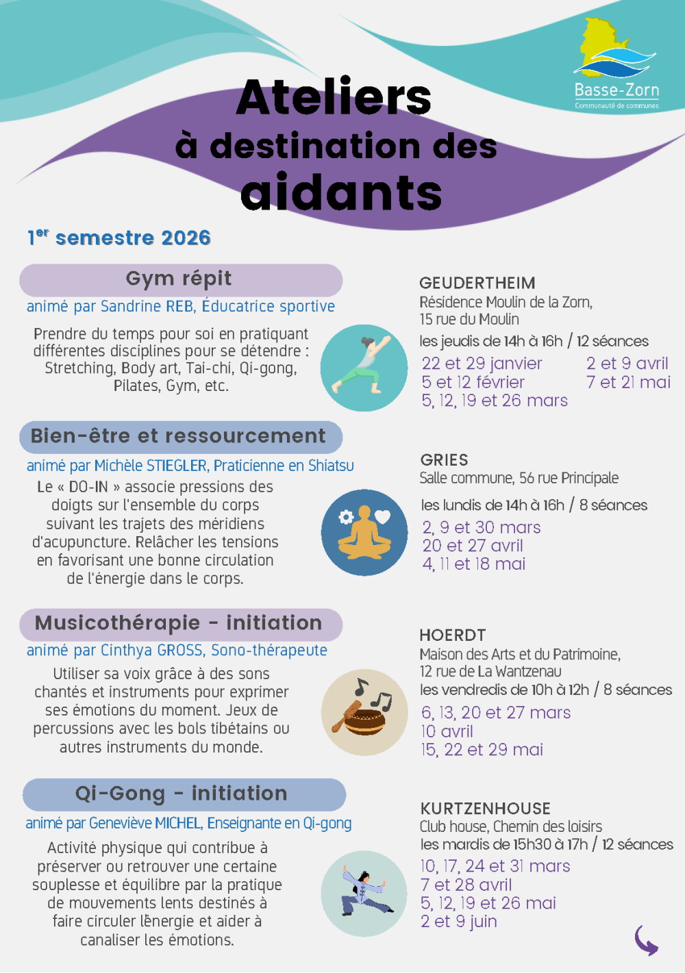 La Communauté de communes de la Basse-Zorn propose des activités gratuites à destination des aidants de son territoire pour favoriser le soutien, l'entre-aide, l'accompagnement et les moments de répit.