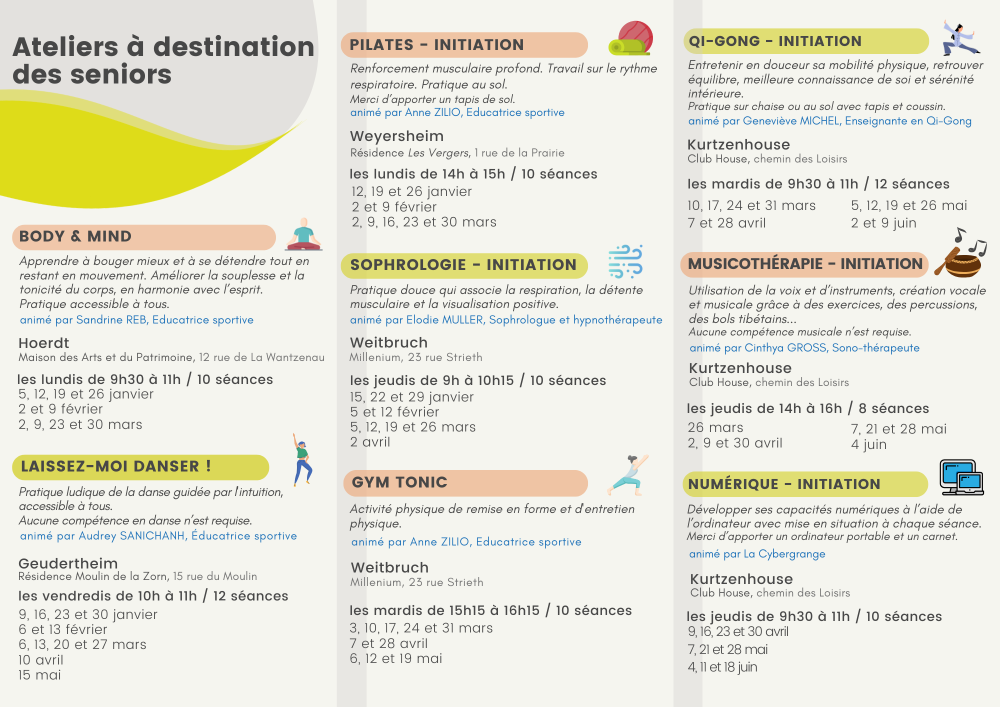 Les activités sont gratuites pour les participants et réservées aux résidents du territoire de la Basse-Zorn. Elles sont subventionnées par la Commission des Financeurs.