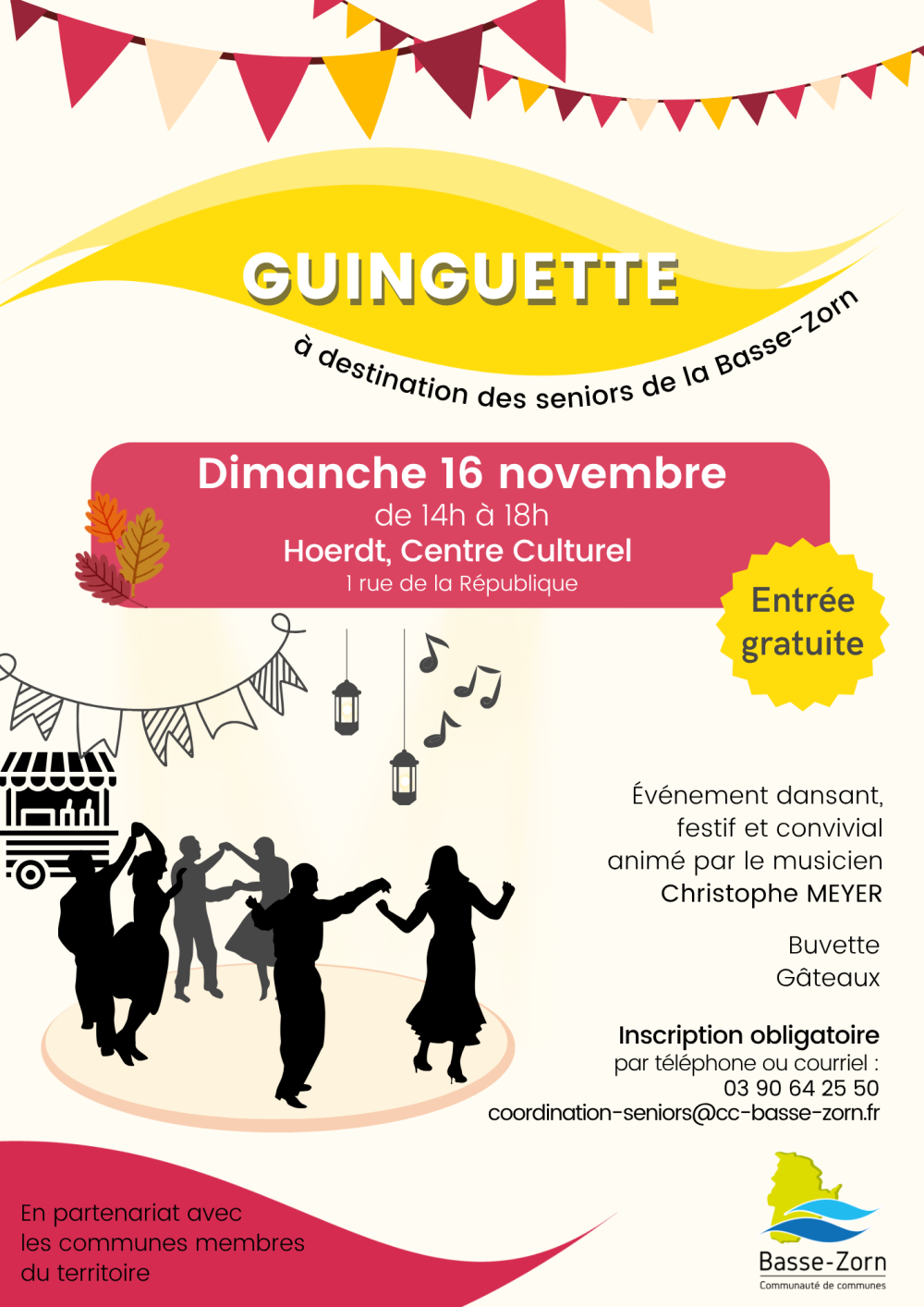 Nous invitons les 60 ans et plus habitant la Basse-Zorn à s'inscrire gratuitement pour cet après-midi guinguette: 03 90 64 25 50 ou coordination-seniors@cc-basse-zorn.fr